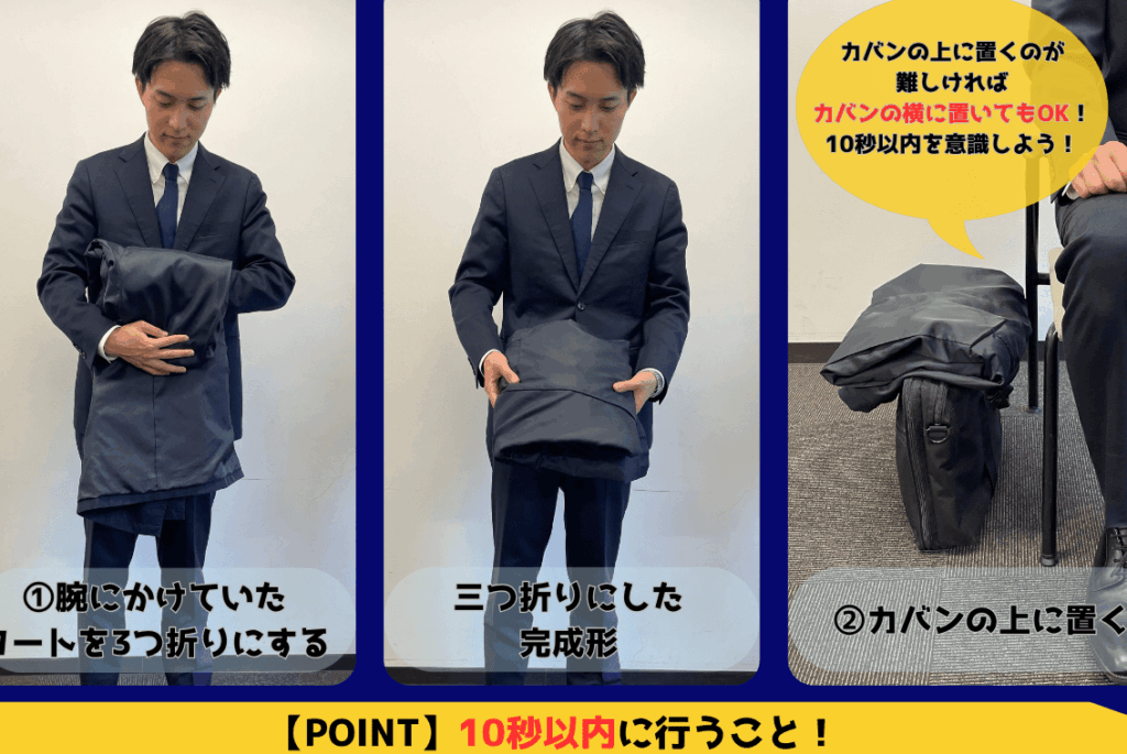 上着は適切な位置に整然と置きましょう。乱雑に放り投げたりすることは避け、丁寧に扱うことで礼儀正しさを示すことができます。