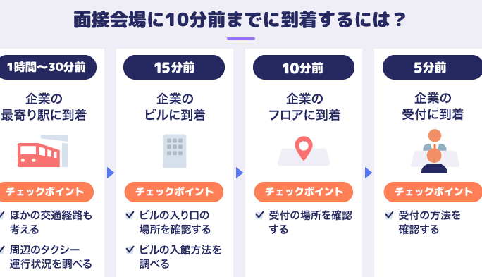 - 時間厳守: 面接には必ず指定された時間よりも早めに到着し、準備万端で臨むことが大切です。