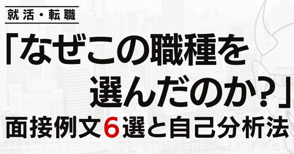具体的には、「なぜこの職種を選んだのか」を答えることで、自身の価値観や経験、そして企業文化とのマッチングについても言及できます。例えば: