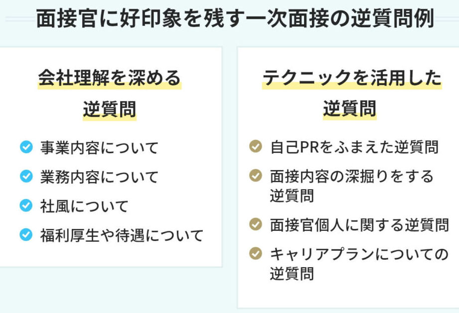 適切な数量と質の逆質問を準備することで、一回目の面接でもしっかりと自分自身をアピールできるでしょう。