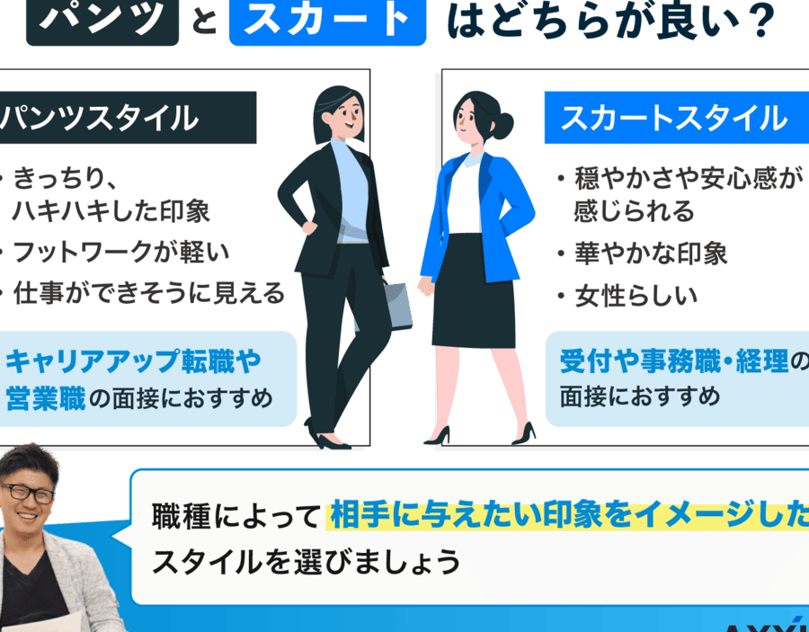 - 快適さ: 面接中には長時間立ったり歩いたりすることがありますので、自分自身が快適だと感じるサイズ・デザインを選ぶことも忘れてはいけません。