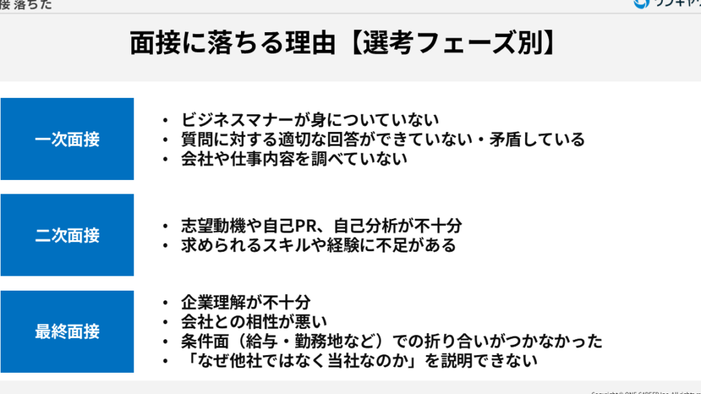 - 文化適合性: 企業文化へのフィット感も選考基準として重視されます。他候補者がその点で優れていた場合、自身はどうアピールできたか振り返る必要があります。