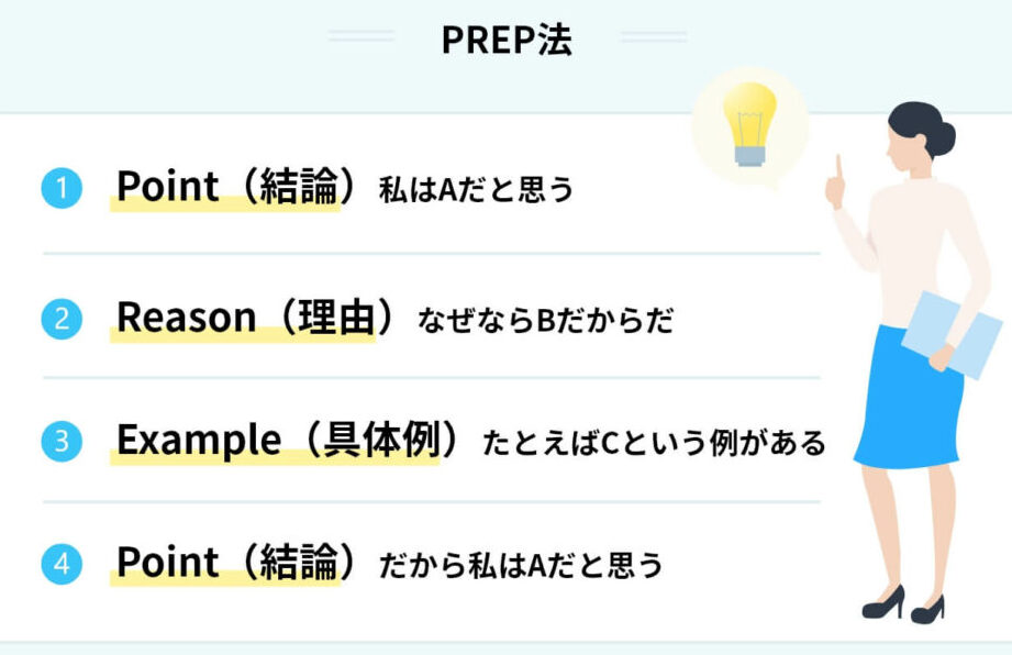 - 論理的思考: 意見や提案は順序立てて述べることで相手も理解しやすくなり、自身への評価も向上します。
