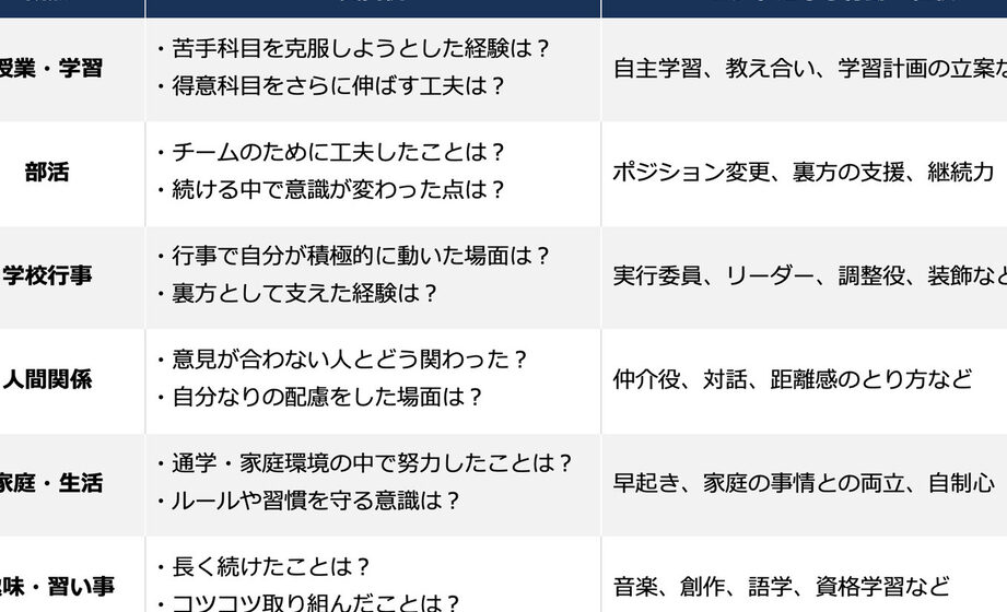 このように、クラブ活動は学業だけでは得られない貴重な経験となり、その後の人生にも良い影響を与えるでしょう。また、面接時にはこれらの経験から何を学んだか、どのように自分自身が変わったかについて具体的に話すことがポイントです。さらに、自身の特技や興味と関連付けて話すことで、より印象深い回答になるでしょう。