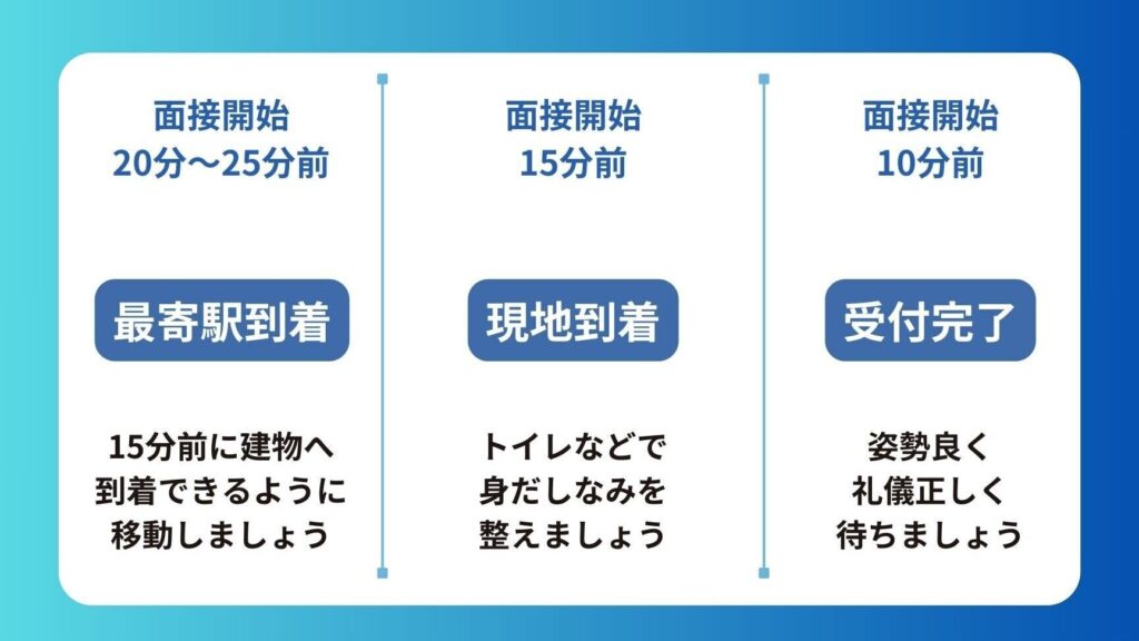 - 面接日時と場所: 面接の日程や時間、会場の住所は正確に把握しておく必要があります。遅刻や混乱を避けるためにも、余裕をもって出発できるよう計画しましょう。