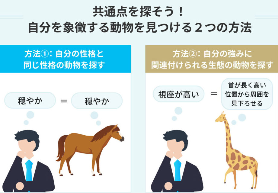 このように、自分自身をどの動物になぞらえるかによって、その後の会話や自己PRにも影響を及ぼします。そして、この選択肢によって私たち自身が伝えたいメッセージも明確になります。