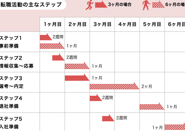 - 1ヵ月前: 基本的な情報収集や履歴書・職務経歴書の作成