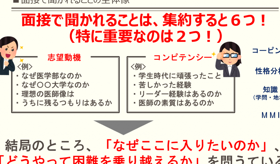 - キャリア目標: どんな医療人になりたいか、そのためにはどこの大学が最適なのか。