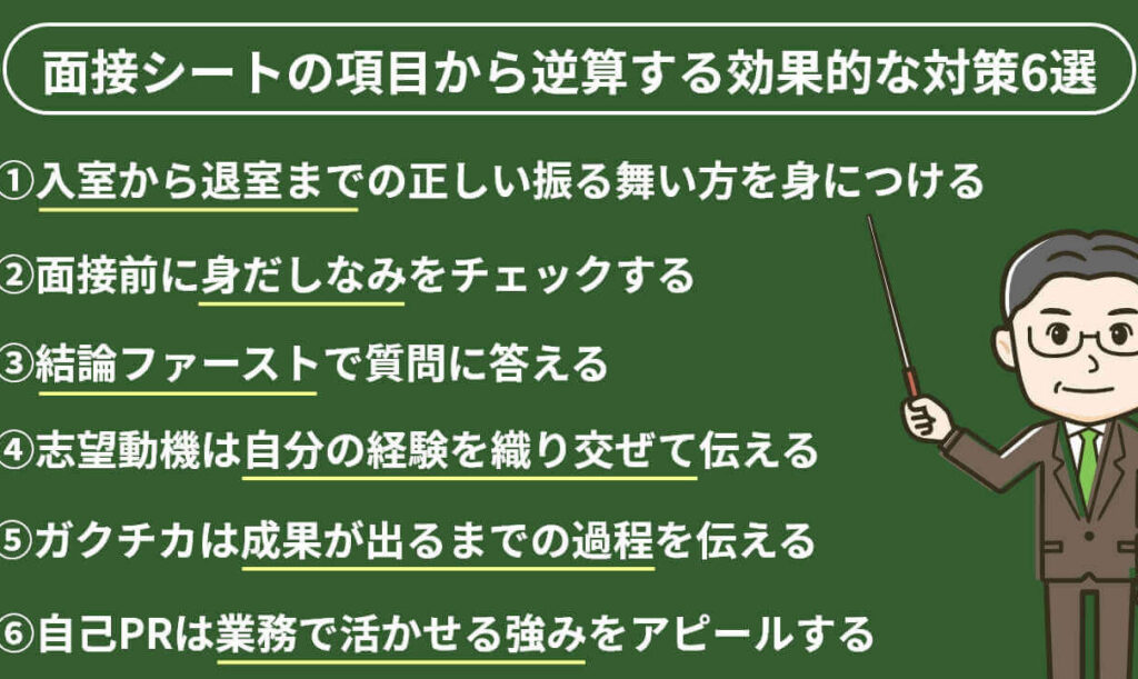- 会社への貢献意識: 面接シートでは、「御社のプロジェクトに参加することで、自分の経験を活かしつつ新しい視点も提供したい」と記載するなど、自らの役割について明確なビジョンを持つことが大切です。