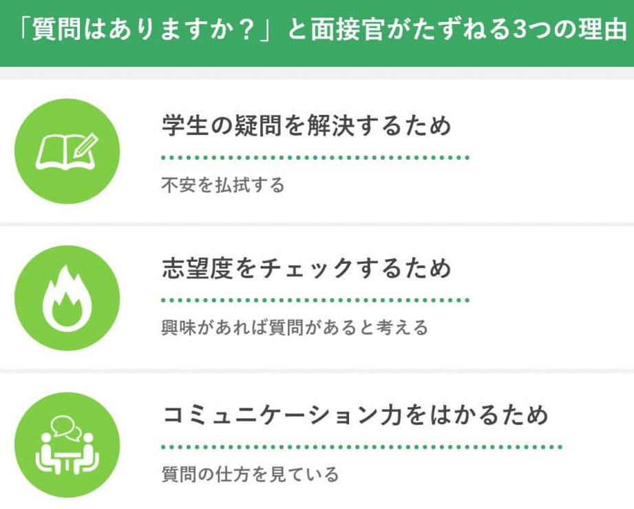 - 関心の表明: 適切な質問によって、自分がその企業や職務に真剣であることを伝えられます。