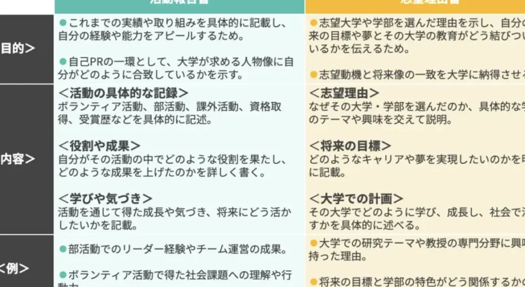 - 将来の目標: 入学後どのような活動を通じて自分を高めたいか明確にします。