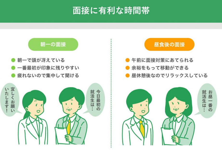 - 午後1時から2時:昼食後として選ばれることも多く、このタイミングでは候補者もリフレッシュした状態で臨むことができます。