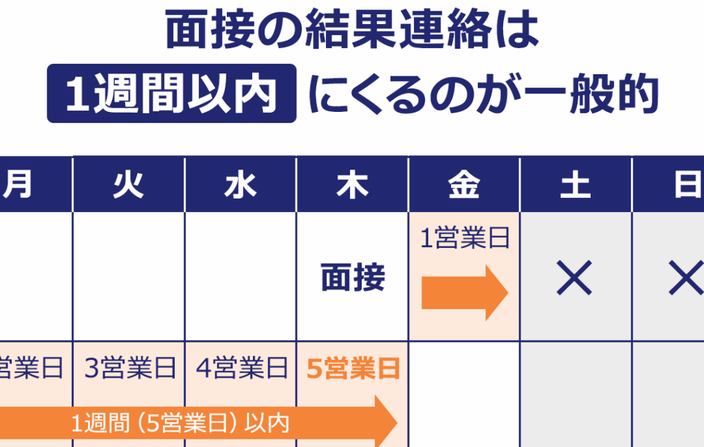 - 結果通知が行われる時期であり、電話またはメールで連絡があります。この際、不合格の場合も理由を簡潔に伝えてもらえることがあります。