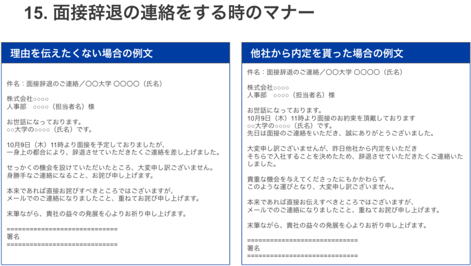- 日時: 面接の日付と時間が正確であるかどうか。